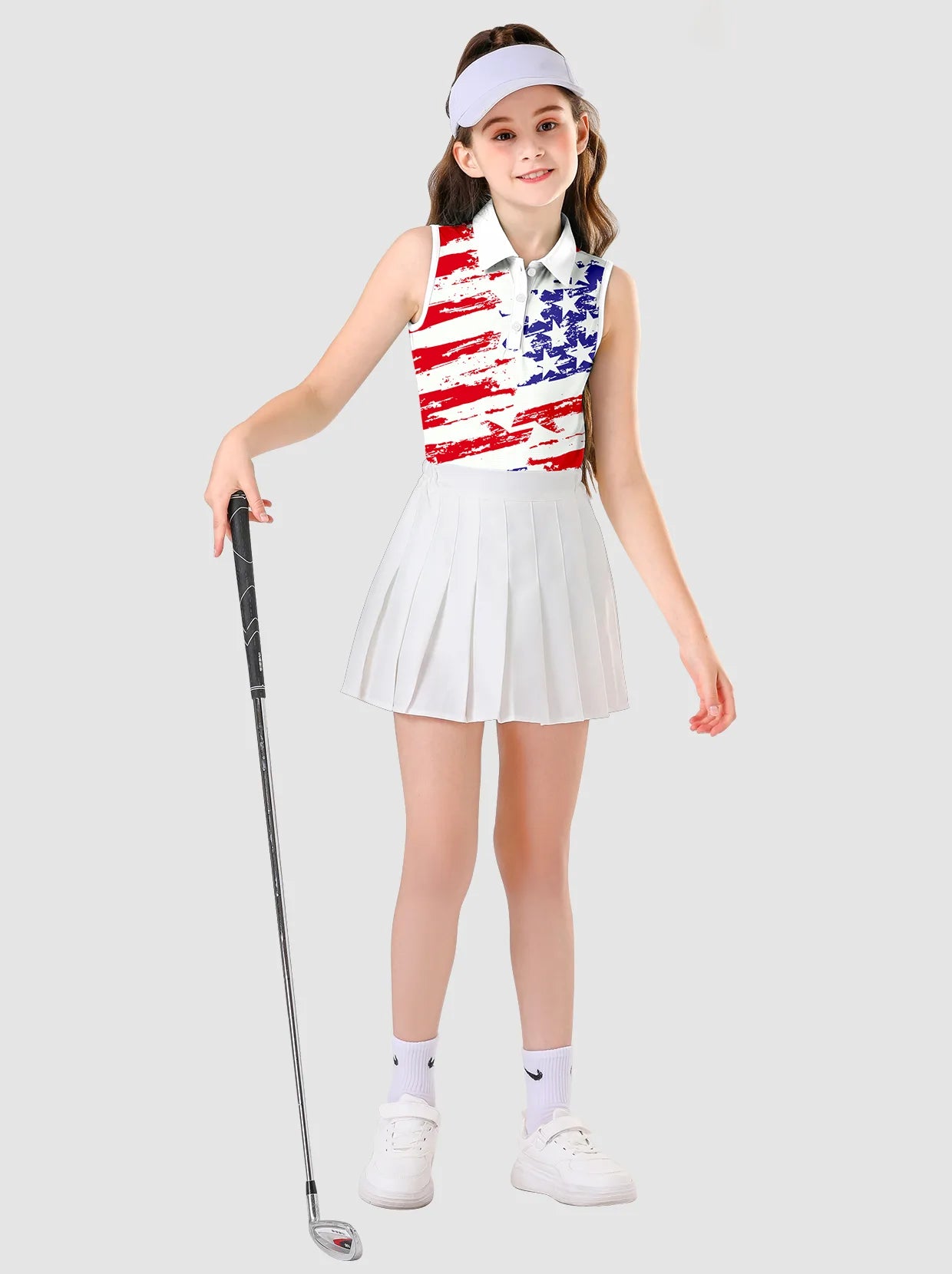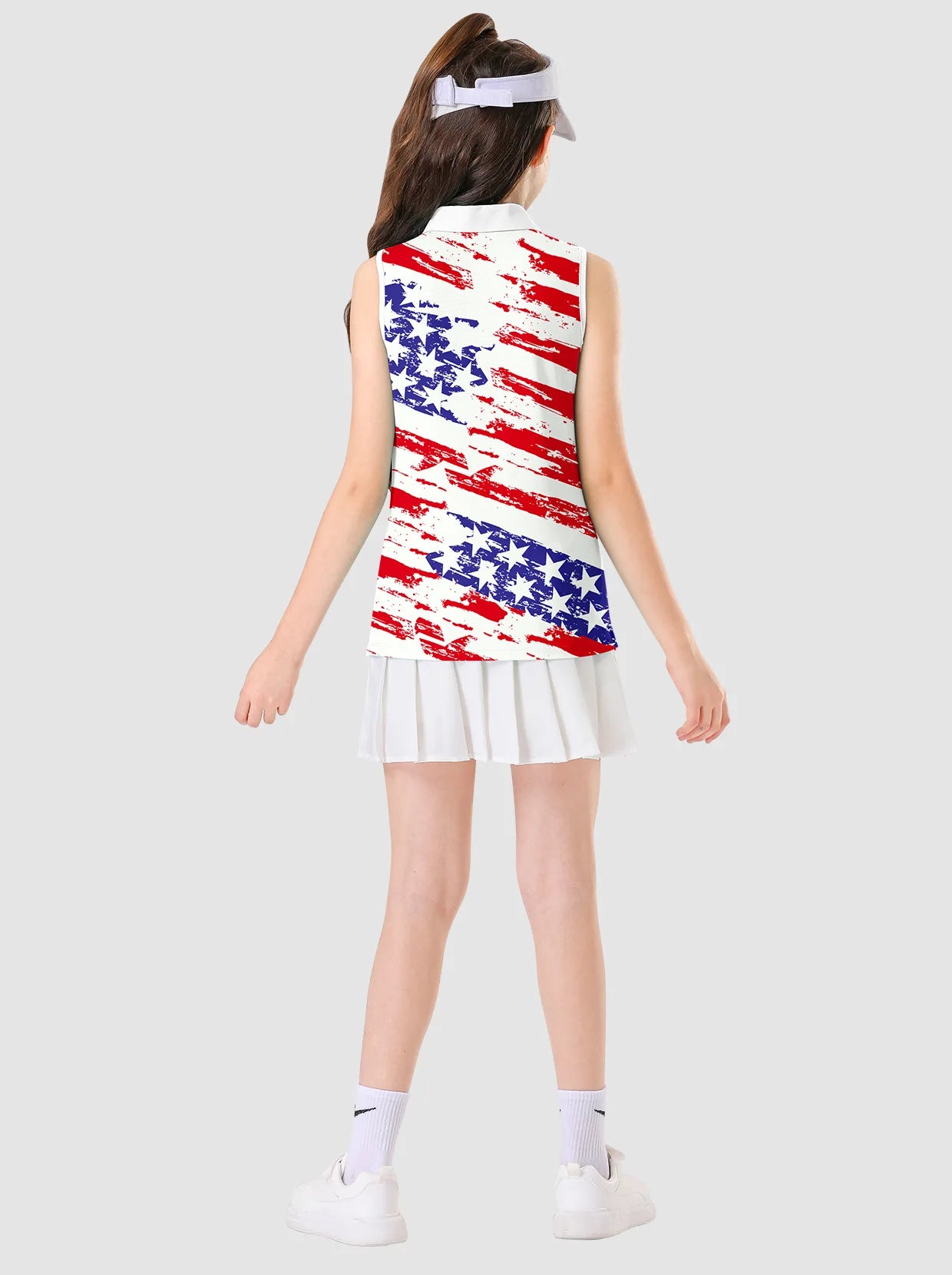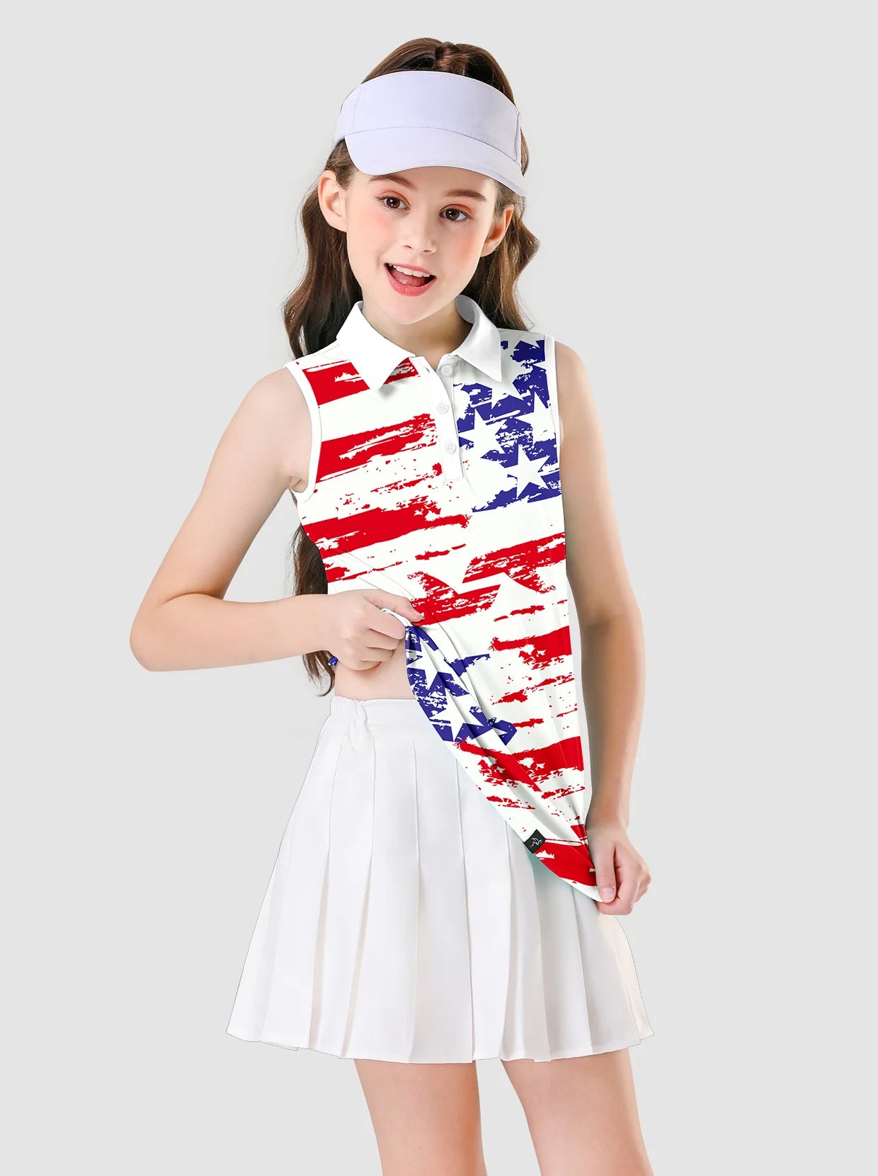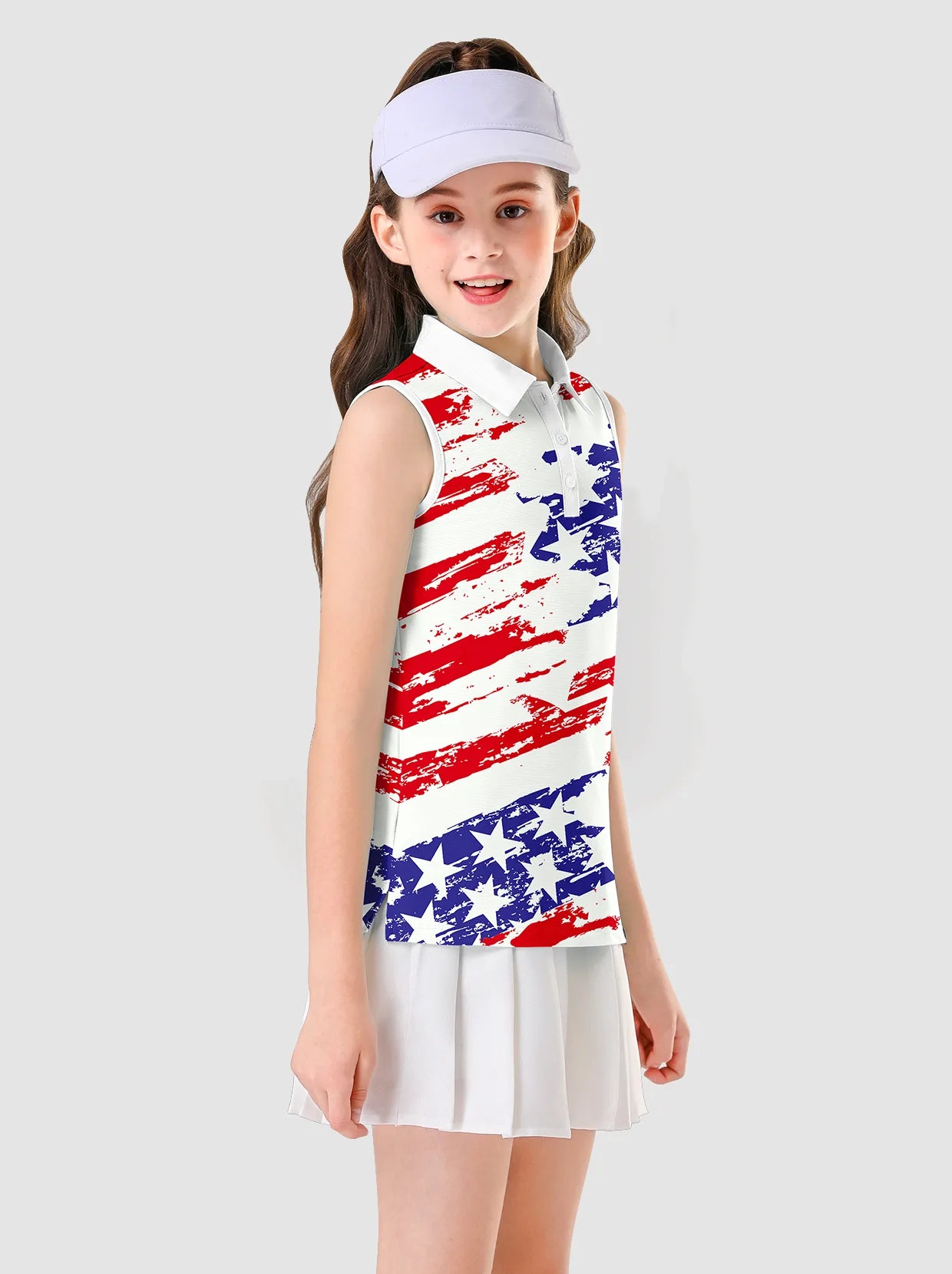 Artistic Flag Pattern Button-placket Sleeveless Polo Shirt for Girls