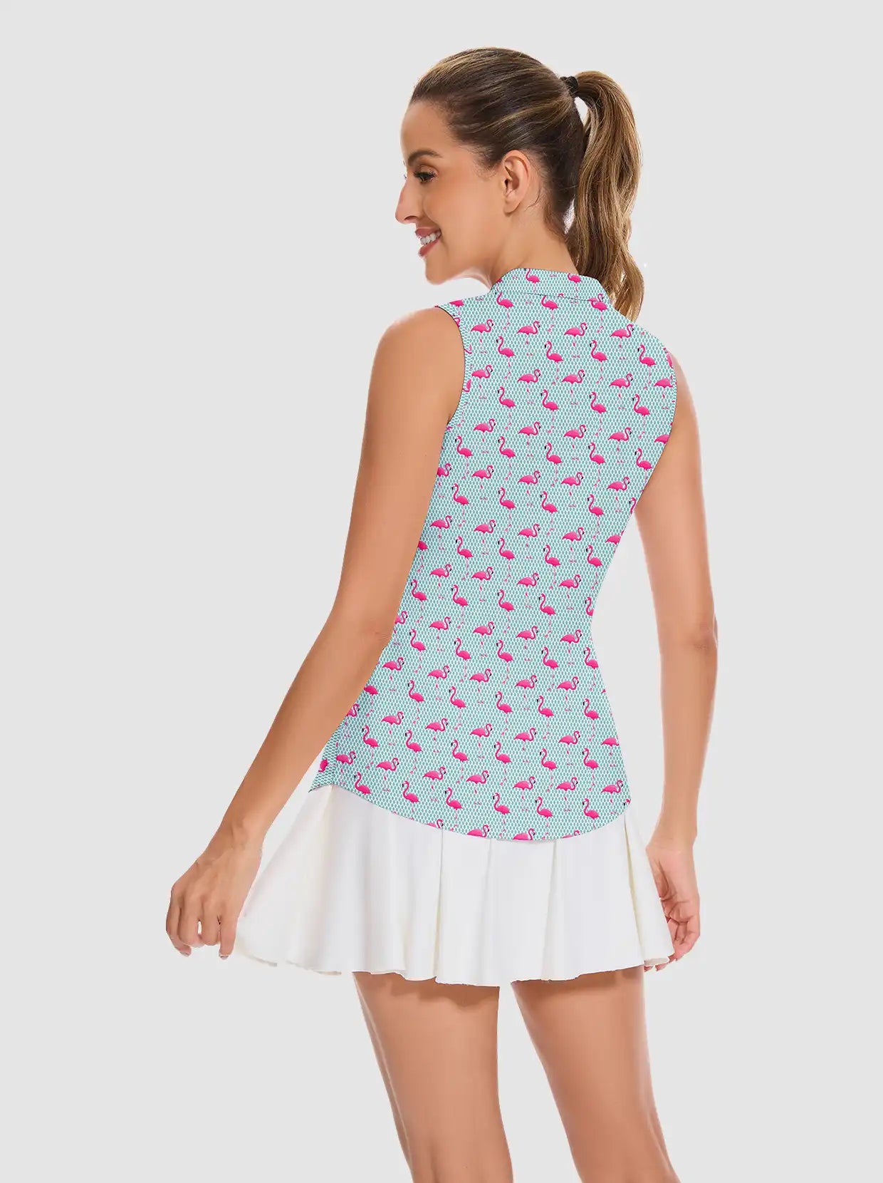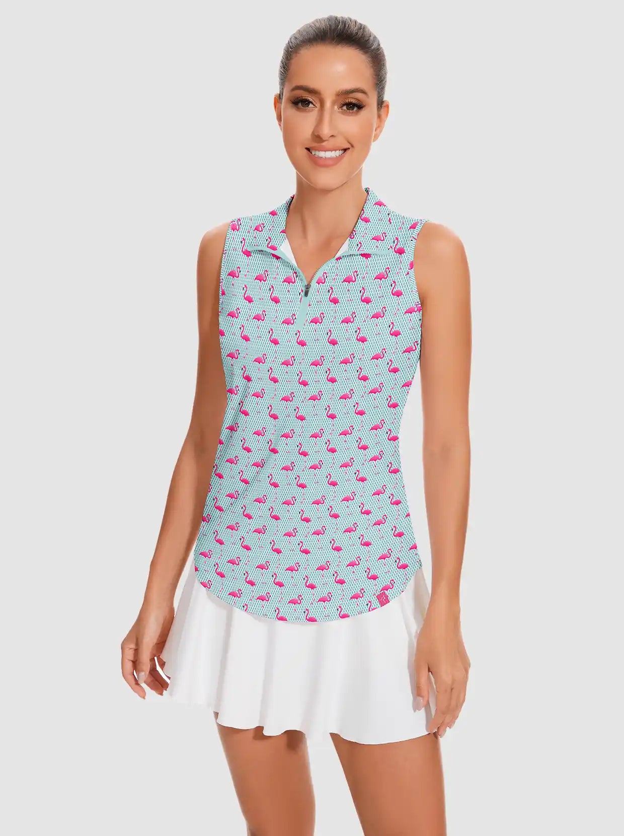 Flamingo Quarter-zip Sleeveless Polo Shirt For Women
