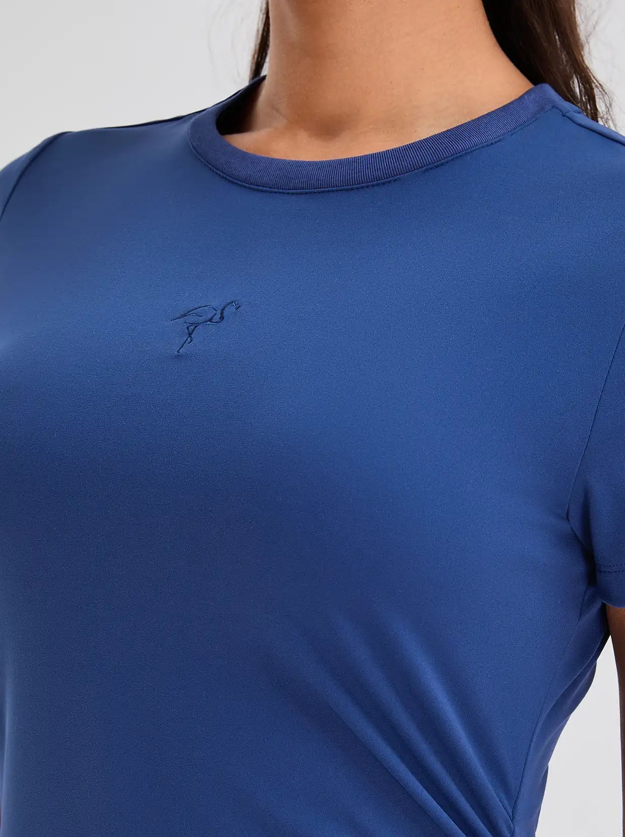 Navy 35" Crew-neck Short-sleeve Dress For Women