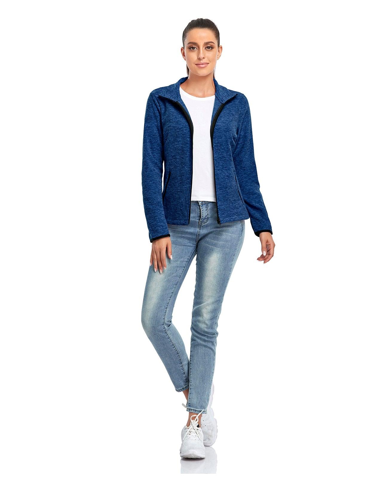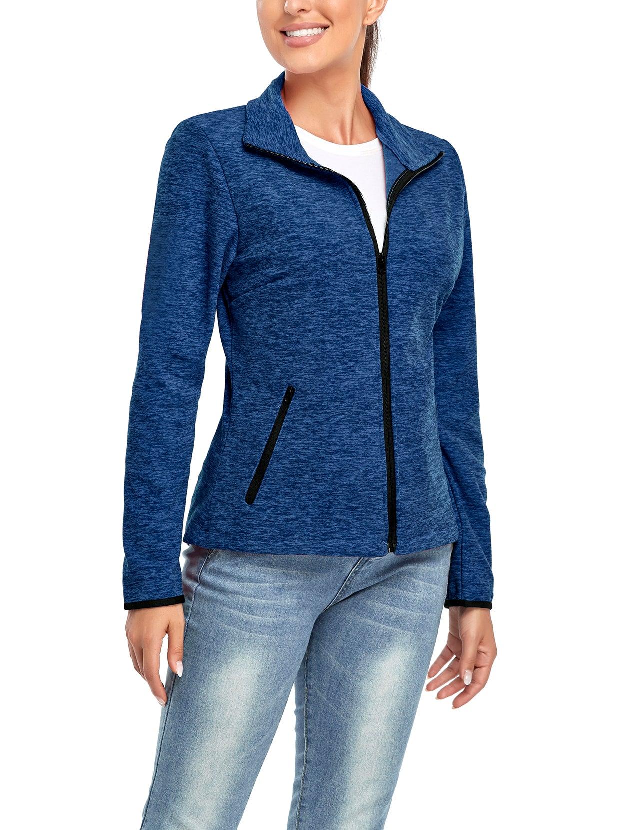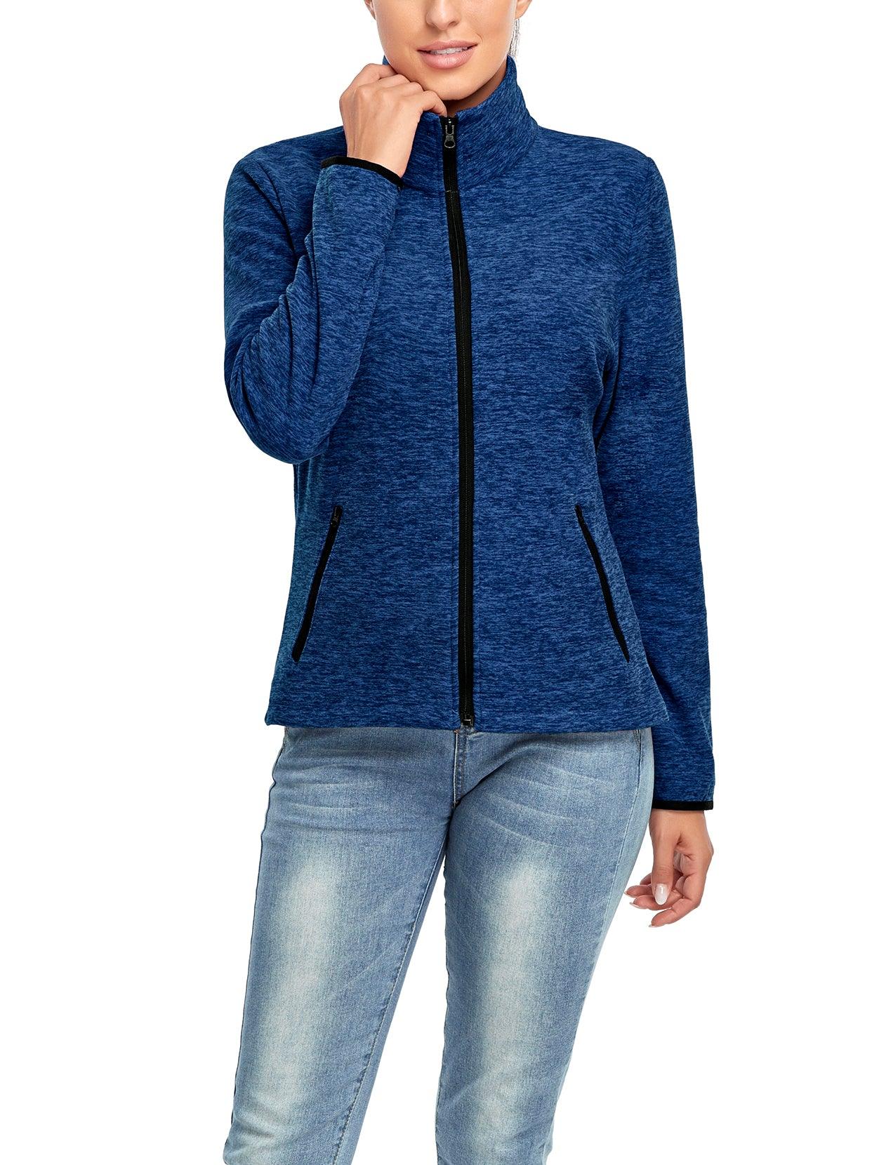 Dark Blue Full-zip Long-sleeve Fleece Jacket with Pockets