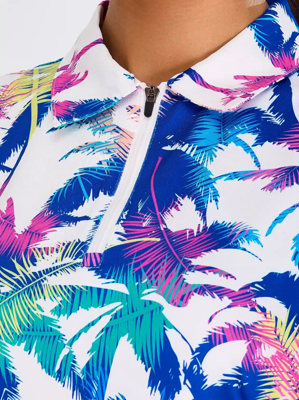 Experience unparalleled comfort in our sleeveless quarter-zip polo. The premium moisture-wicking fabric ensures optimal breathability, maintaining freshness throughout your day. Its refined sleeveless silhouette offers unrestricted movement for any pursuit. The vibrant, colorful leaves pattern adds joy to your game while our durable anti-pilling fabric keeps you looking sharp round after round. We've designed this polo with your needs in mind, featuring a convenient quarter-zip that lets you adjust ventilation as needed.