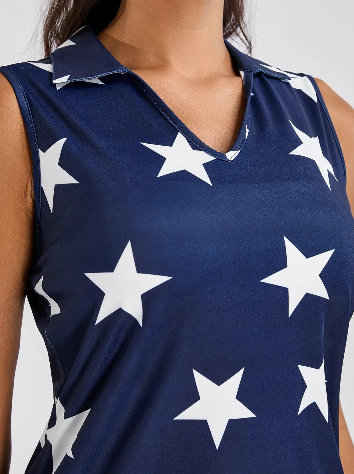 White Stars on Dark Blue Background V-neck Sleeveless Polo Shirt