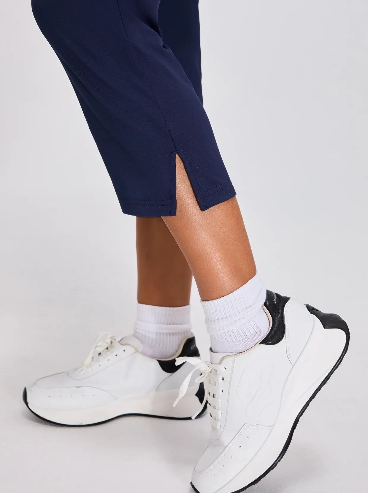 Women's Dark Blue High-Rise 7/8 Pants with Pockets
