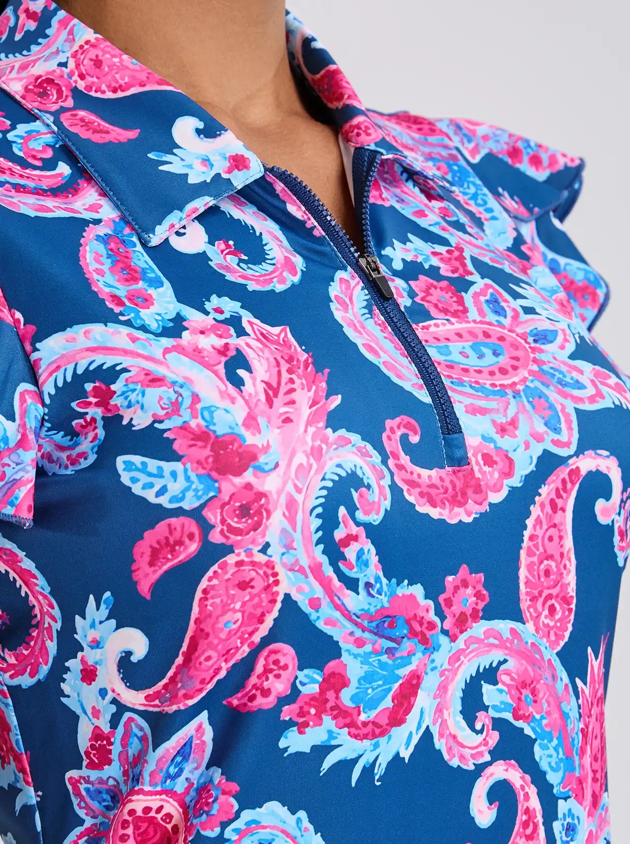 Women's Paisley 34" Quarter-zip Ruffled Sleeve Golf Dress with Pockets