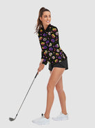 Embrace the Halloween spirit with our fun and functional pumpkin print quarter-zip polo. This lightweight, breathable, and quick-drying fabric keeps you comfortable and dry throughout the day. The raglan sleeve design offers a full range of motion, while the flat-seam construction minimizes chafing, ensuring a comfortable fit. The playful pumpkin pattern adds a touch of Halloween cheer, making it perfect for festive gatherings.