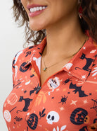 Get into the spirit of Halloween with our Halloween Orange quarter-zip long-sleeve polo. Crafted from a soft, breathable, and quick-drying fabric, it keeps you comfortable and dry. The quarter-zip design offers versatile styling, while the long sleeves provide just the right amount of coverage for cooler days. With its vibrant orange color and festive print, it's a must-have for any Halloween occasion.