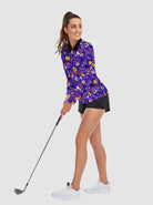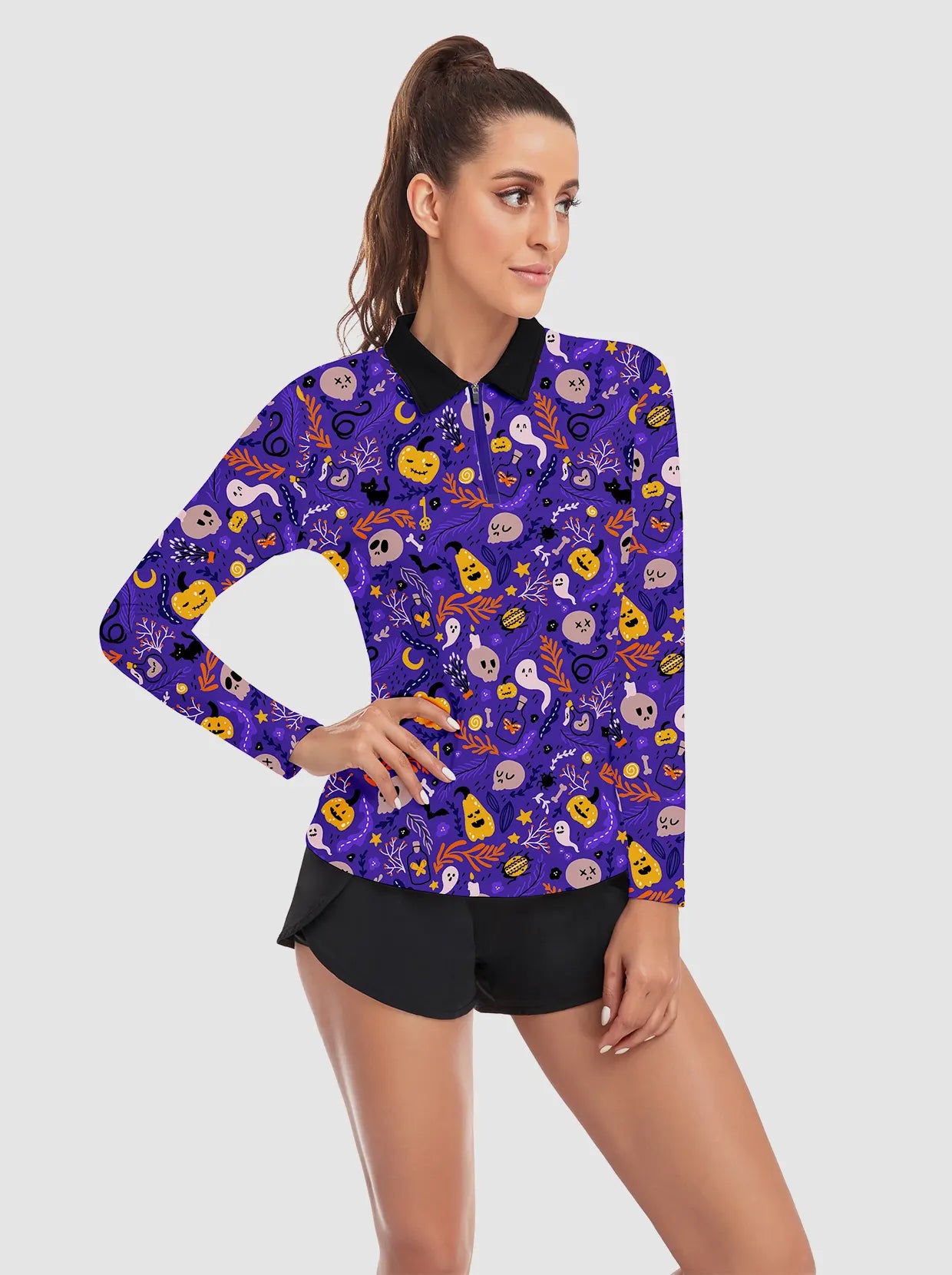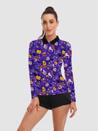 Halloween Pumpkin and Ghost Quarter-Zip Long-Sleeve Polo Tops for Ladies
