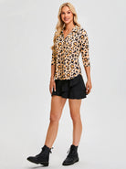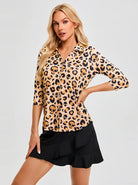 Halloween Yellow Skull V-neck Button Down 3/4 Sleeve Shirt for Women