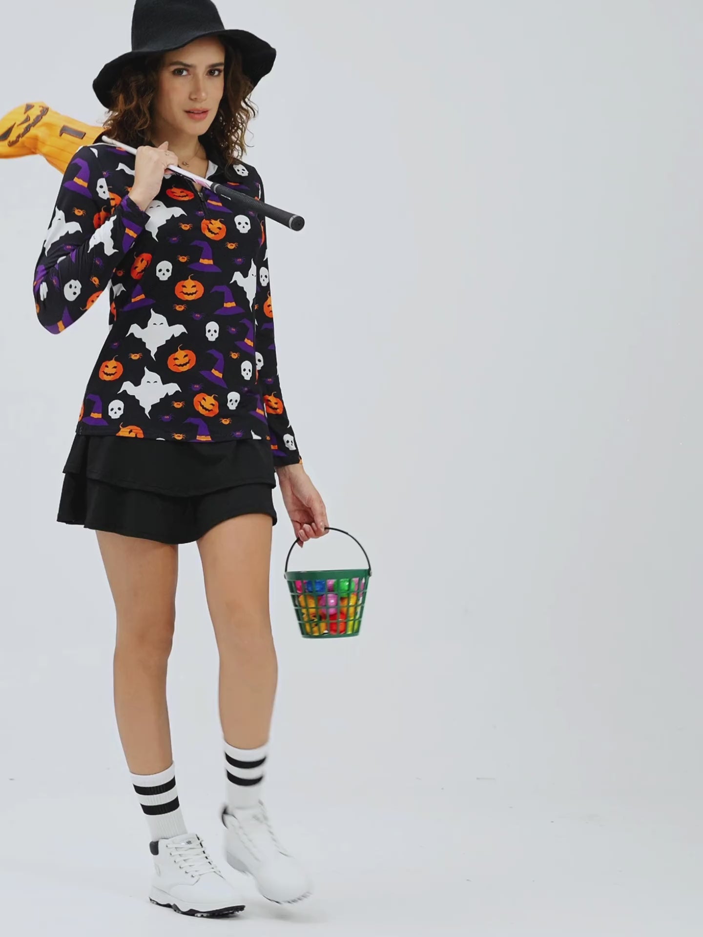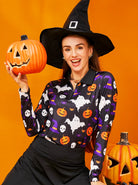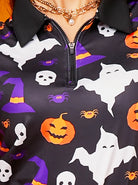Halloween Pumpkin and Skull Quarter-zip Long-sleeve Polo Top for Ladies