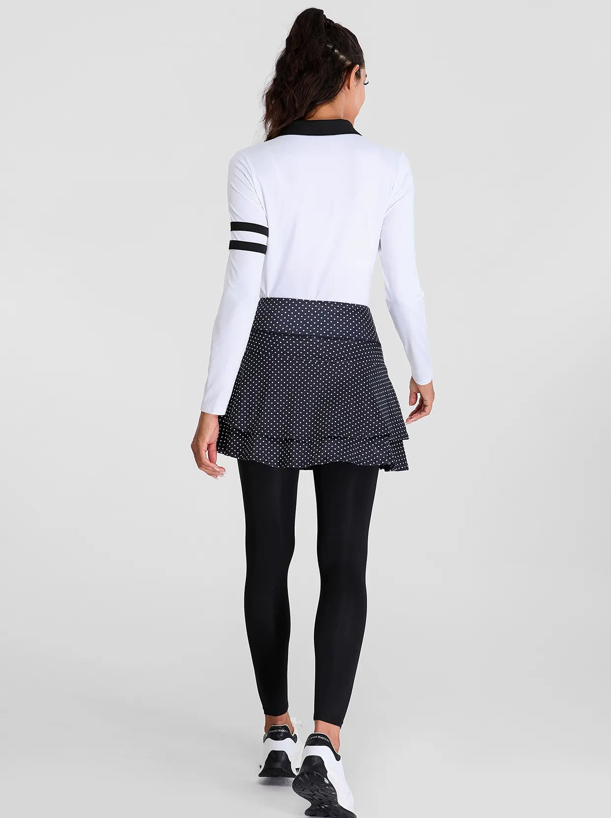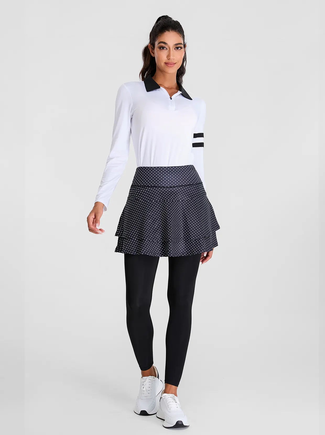 White Dot Pleated Athletic Skirted Leggings for Women