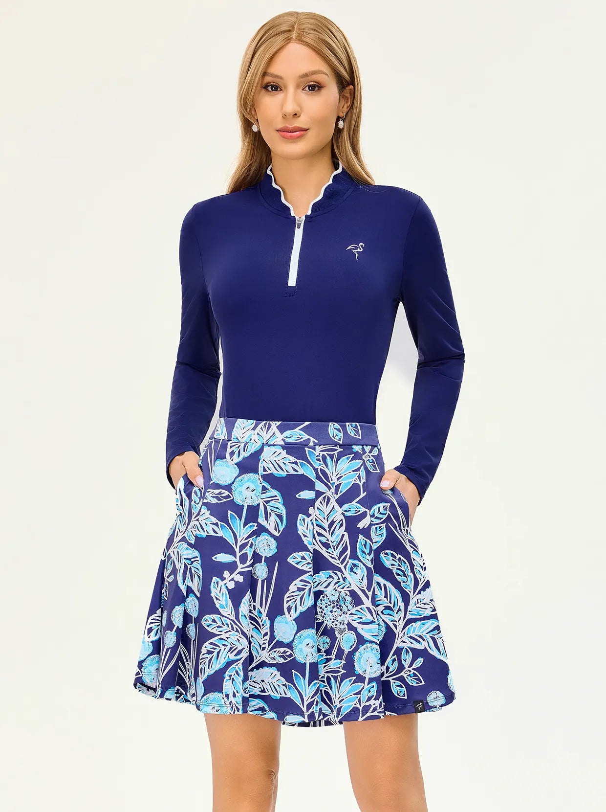 Water-repellent Navy 17" Pleated Golf Skorts with Shorts and Pockets