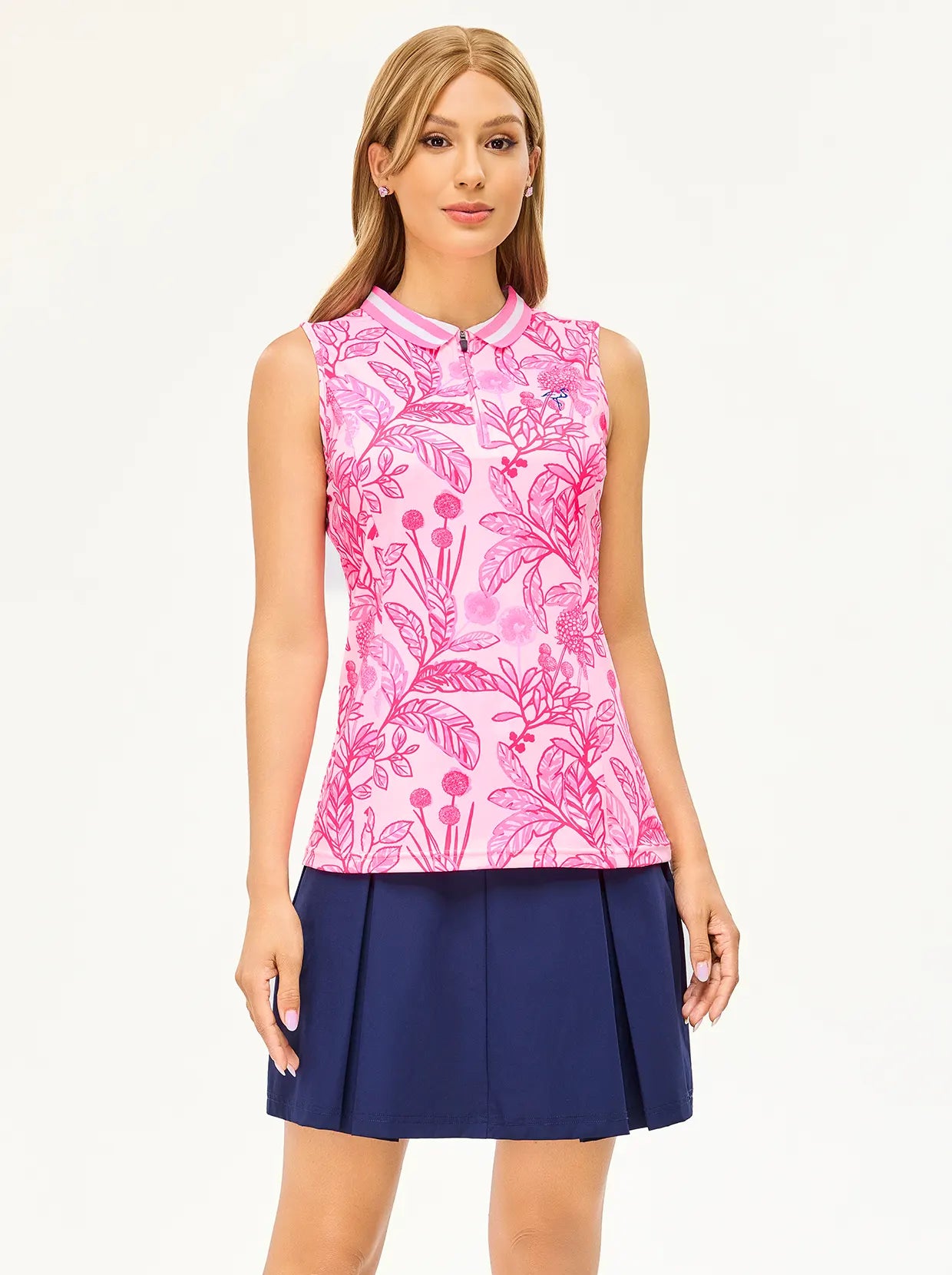 Pink Dandelion Quarter-zip Sleeveless Polo with Ribbed Collar (SHIP IN 8 DAYS)