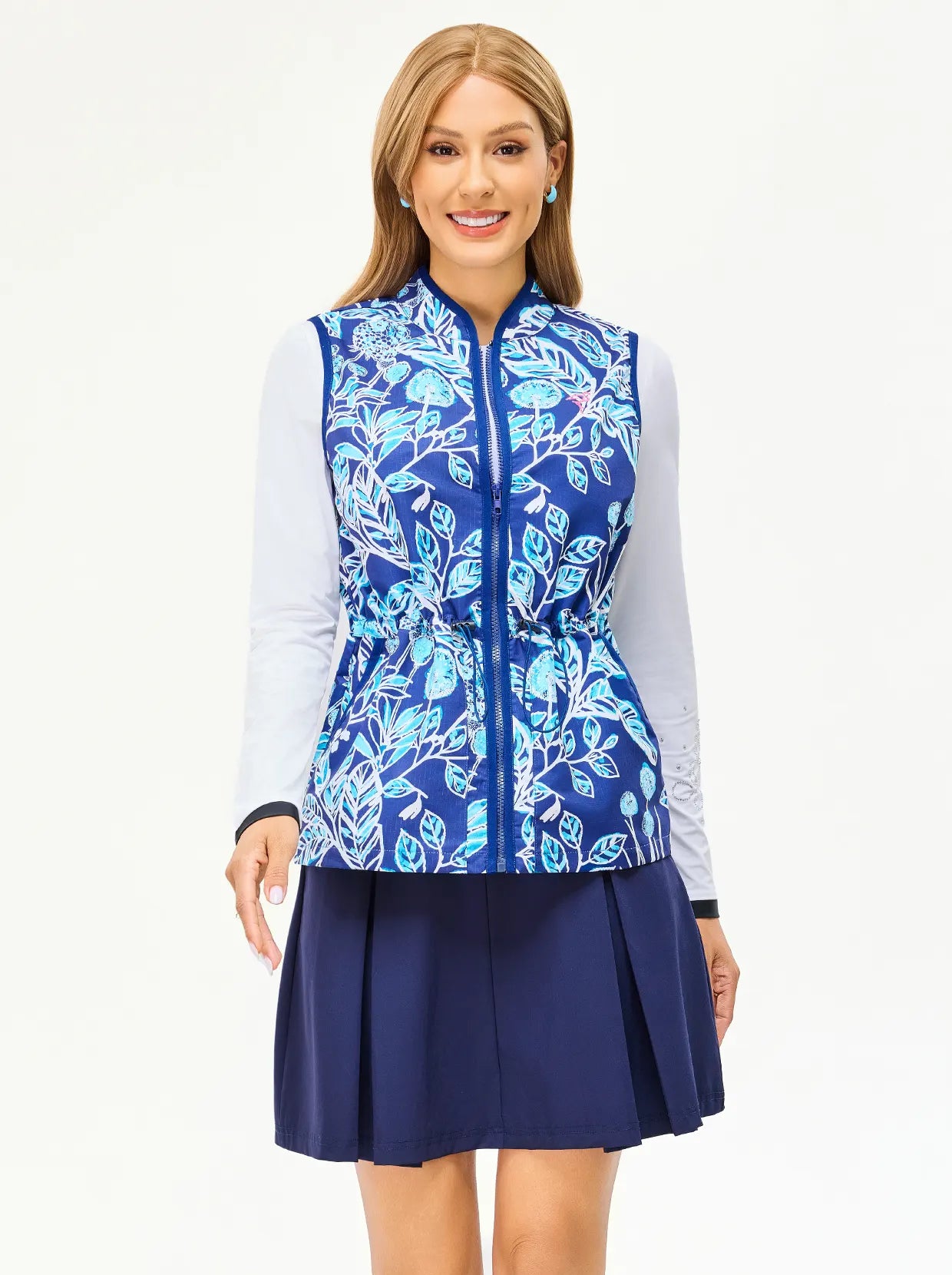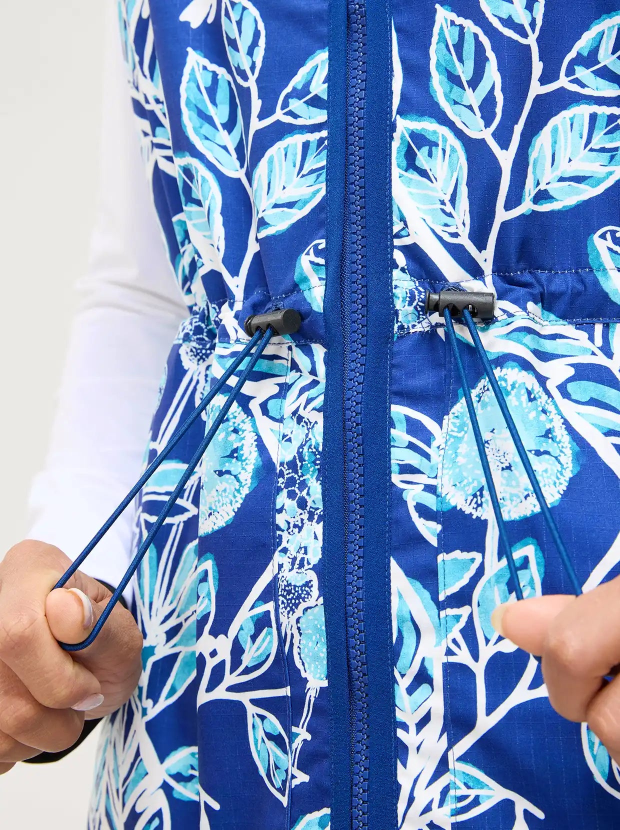 Water-repellent Blue Dandelion Active Vest with Cinched Waist