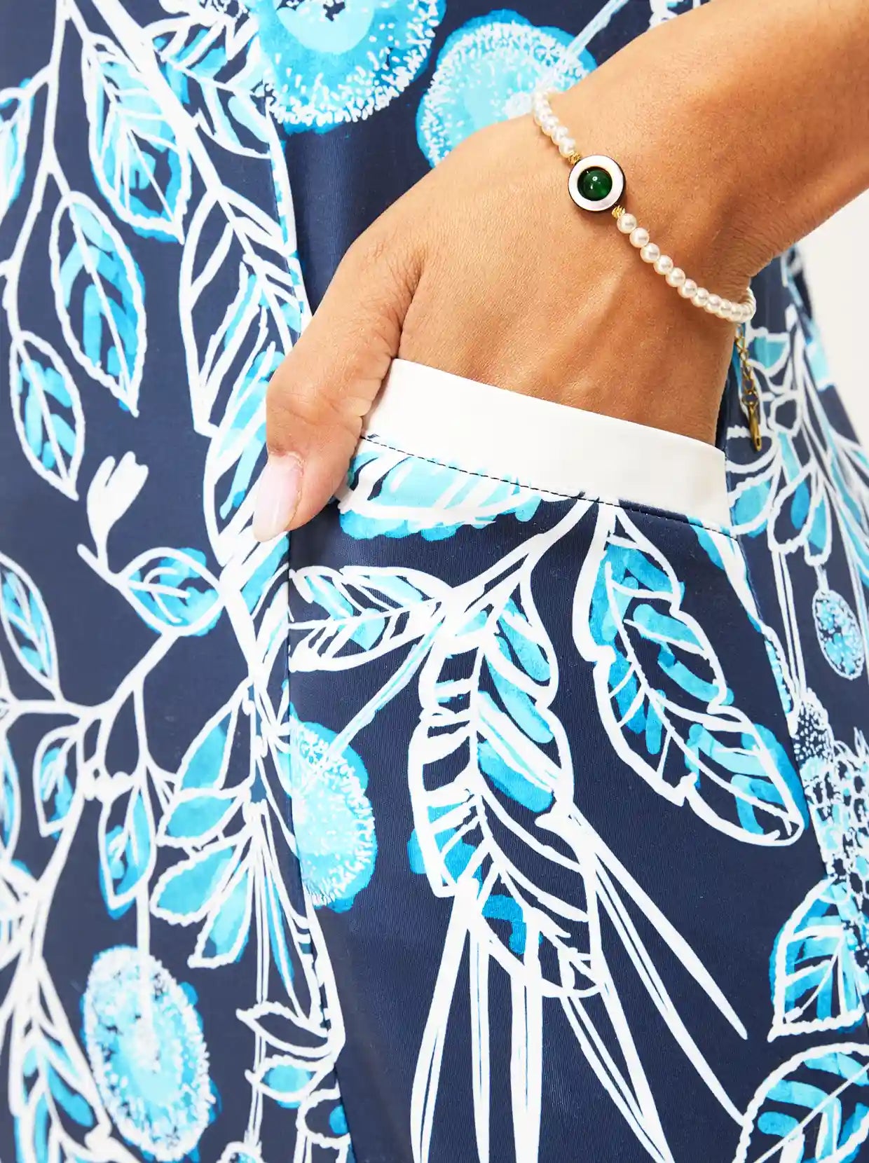 34" Blue Dandelion Sleeveless Dress with Shorts and Pockets