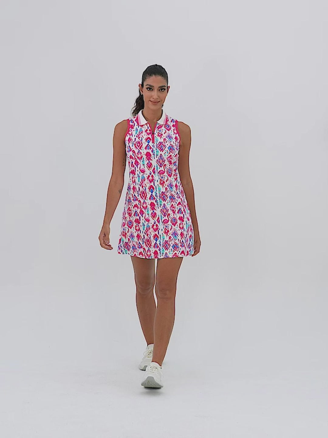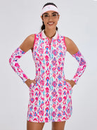 LuxeCool™ 34" Pink Flamingo Quarter-zip Sleeveless Dress