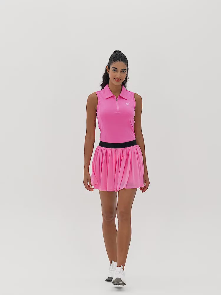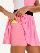 - Striking Contrast - The bold pink skort is beautifully complemented by a black elastic waistband, creating a modern and stylish look.