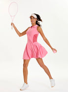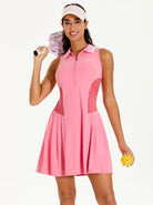 Eco-Friendly 35" Pink Quarter-zip Pleated Dress with Shorts