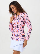Halloween Witch hat Print Quarter-Zip Long-Sleeve Polo Tops for Ladies