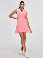Unrestricted Movement - Experience complete freedom of movement with our durable, 4-way stretch material that retains its shape. Combined with a sleeveless and racerback design, this golf dress ensures a full range of motion.