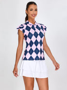 Get ready to hit the court with confidence. Our Pink and Blue Checkerboard Polo Shirt is designed to keep you looking great and feeling comfortable. With moisture-wicking and breathable fabric, this shirt has your back on the sunniest of days. The ruffle sleeve adds a touch of femininity, perfect for staying stylish on and off the court. Whether you're playing golf, tennis, pickleball, or just enjoying a casual day out, this shirt has got you covered.