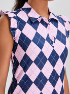 Stay stylish and comfortable with our Pink and Blue Checkerboard Ruffled Sleeveless Active Dress. Designed with built-in shorts and pockets, it's the perfect blend of fashion and functionality. The moisture-wicking, breathable fabric keeps you cool and dry. Whether you're hitting the golf course, playing a game of tennis, or simply going about your day at the office, this dress is suitable for all occasions. Experience style and versatility with our Pink and Blue Checkerboard dress.