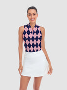 Pink Checkerboard Quarter-zip Racerback Sleeveless Shirt For Women