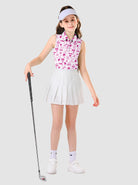 Pink Coconut Tree Button-placket Sleevless Polo Shirt For Girls