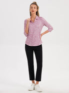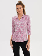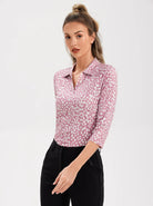 Pink Dots 3/4 Sleeve V-neck Cute Casual Polo Shirt