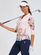 Take a risk with our bold and stylish Pink Flamingo and Floral 3/4 Sleeve Polo Shirt! Made with 88% Polyester and 12% Spandex, it boasts soft and breathable material that allows for 4-way stretch, ensuring maximum comfort. The button-down and V-neck collar design adds a touch of adventure to your wardrobe, making it perfect for both golfing and office wear. Don't miss out on this versatile and daring piece!