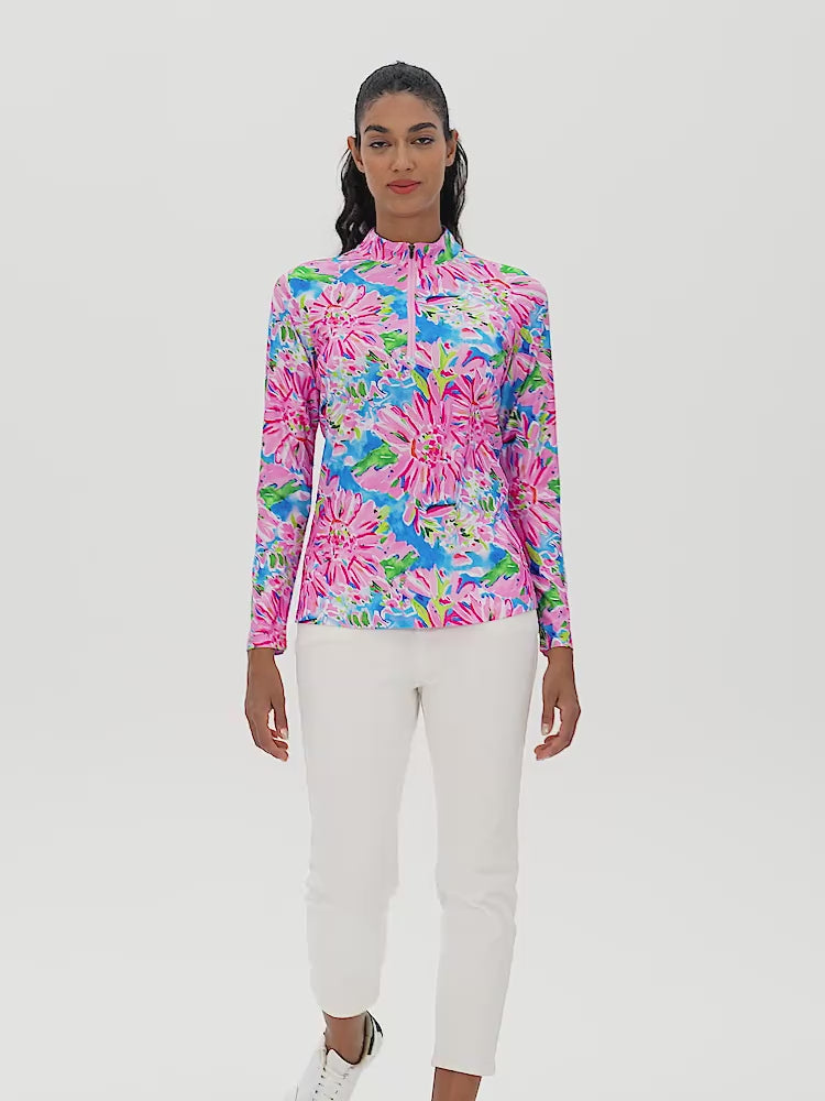 Pink Floral Quarter-zip Long-sleeve Shirt for Women