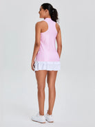 Pink Houndstooth Quarter-zip Racerback Sleeveless Shirt For Women