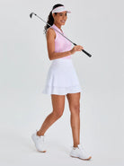 Effortlessly stylish and functional, our Pink Houndstooth Quarter-zip Sleeveless Shirt is perfect for any activity. With quick dry, moisture-wicking, and stretch fabric, our racerback top is lightweight and comfortable for all-day wear. The collar is designed with a quarter-zip for easy on and off, while the sleeveless design allows for a full range of motion, making it perfect for golf, tennis, pickleball, or daily wear. You'll look and feel great wearing this versatile and fashion-forward shirt.