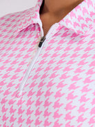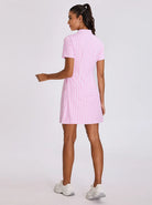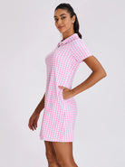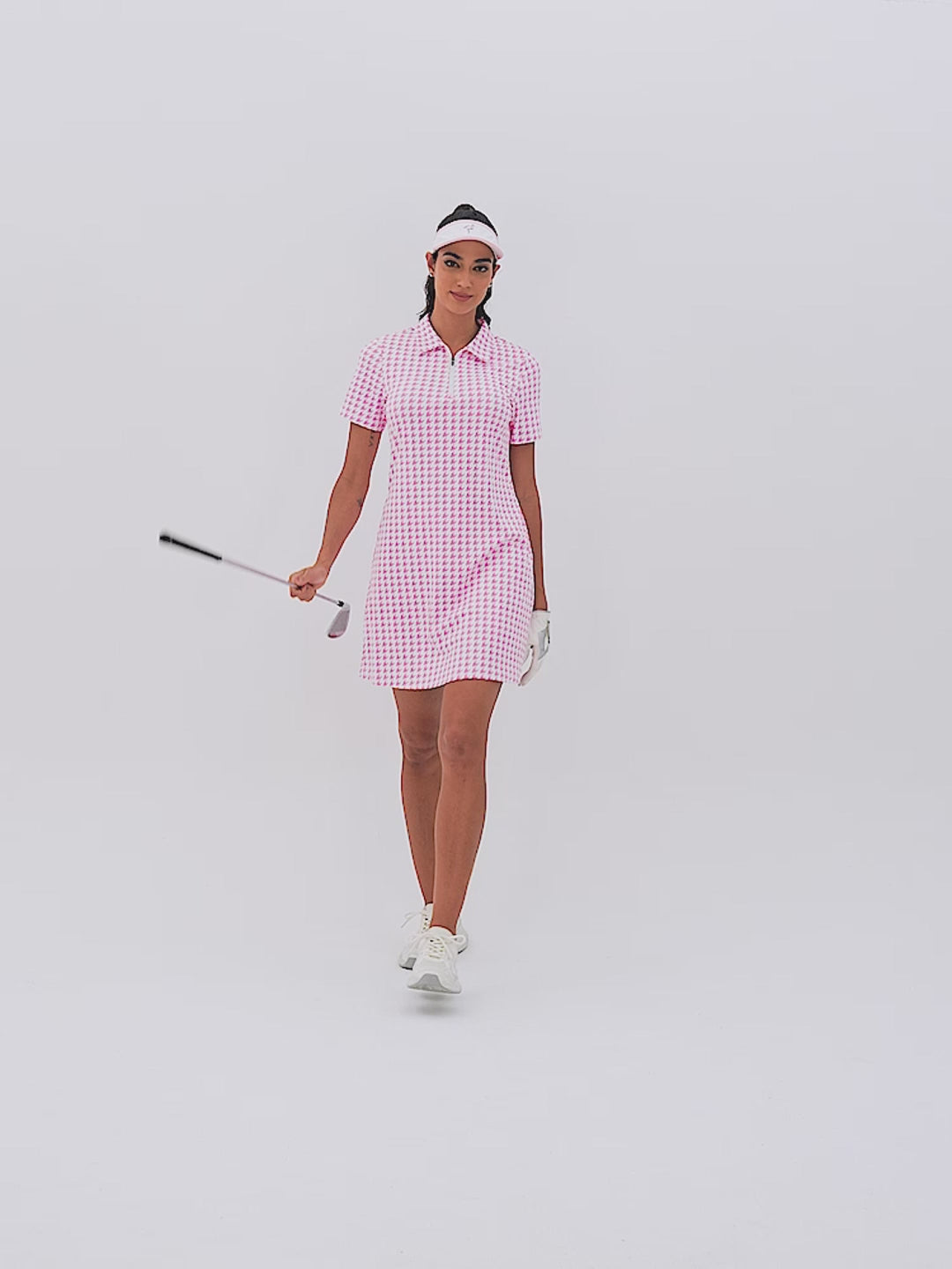 Pink Houndstooth 33" Zipper Short-Sleeve Polo Dress With Inner Shorts