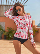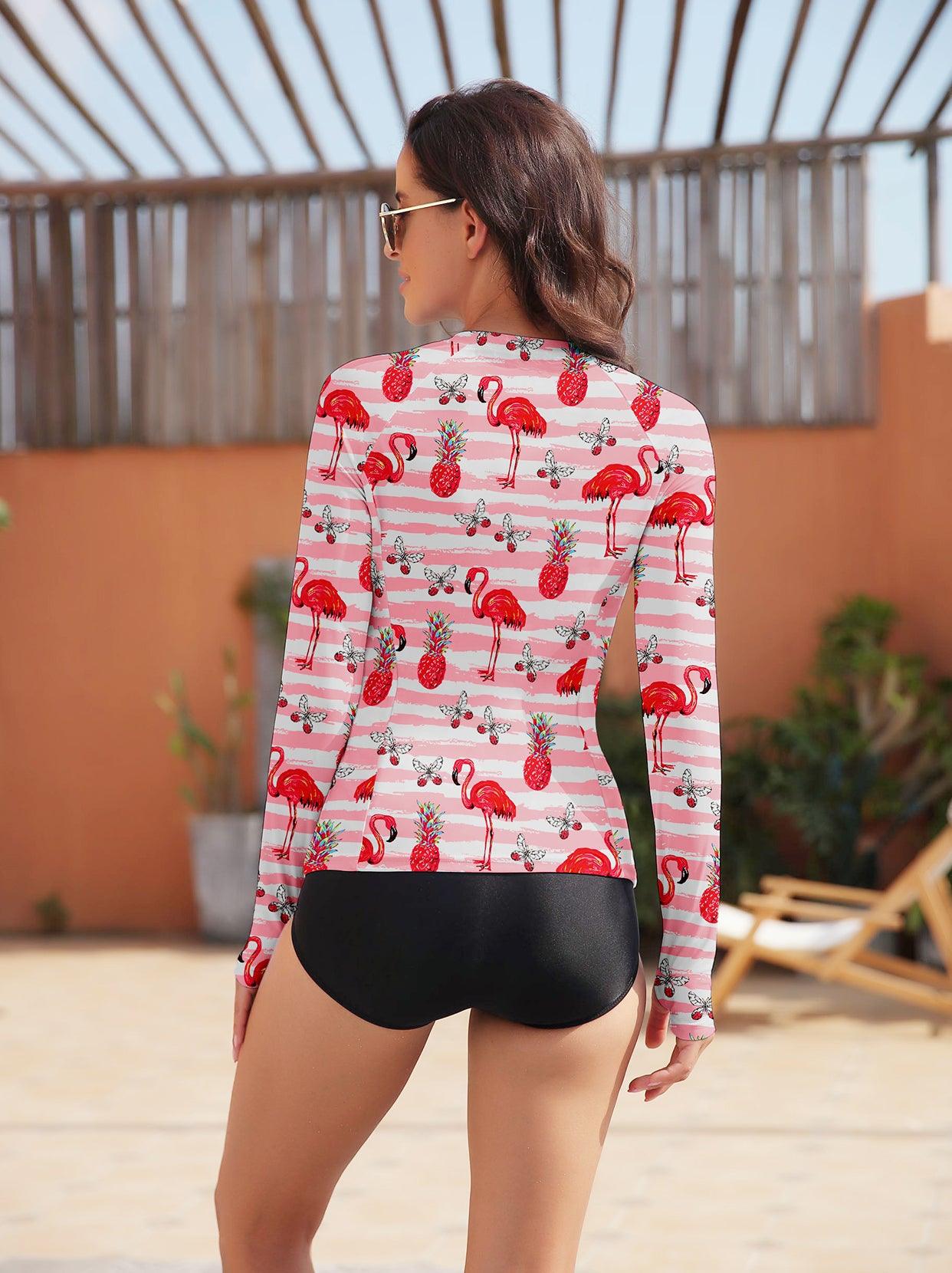 Pink Flamingo Quarter-zip Long-sleeve Rash Guard For Women