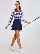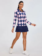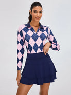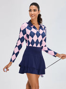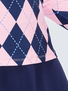 Pink and Navy Argyle V-neck Golf Polo Shirt for Women