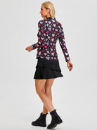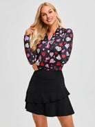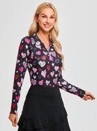 Colorful Heart Quarterzip Long Sleeve Polo Shirt for Women