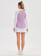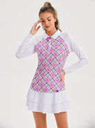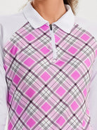 Pink Argyle Long-sleeve Patchwork Polo Shirt