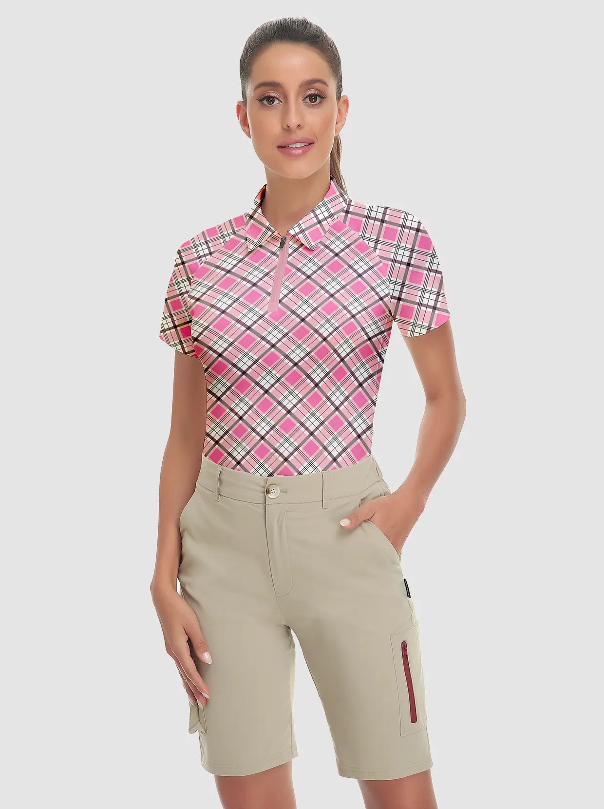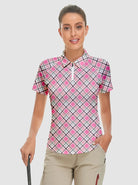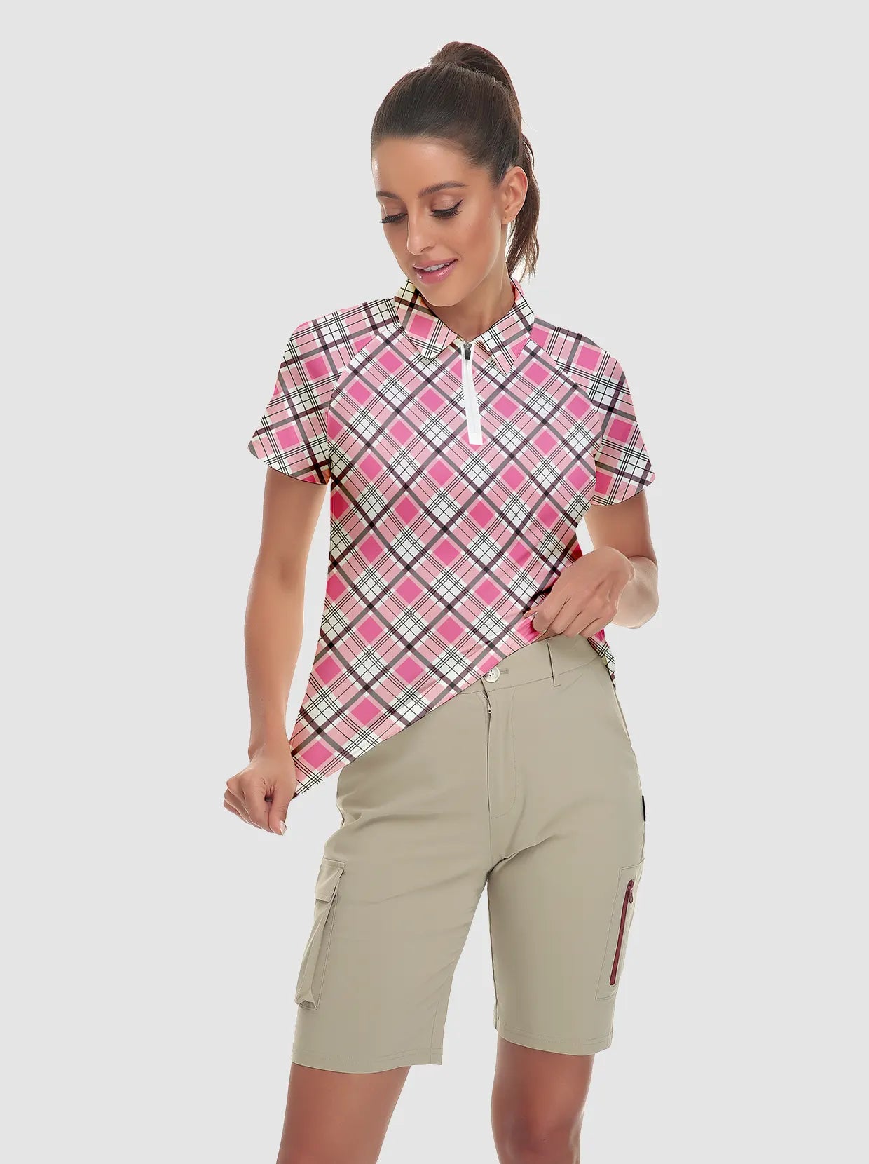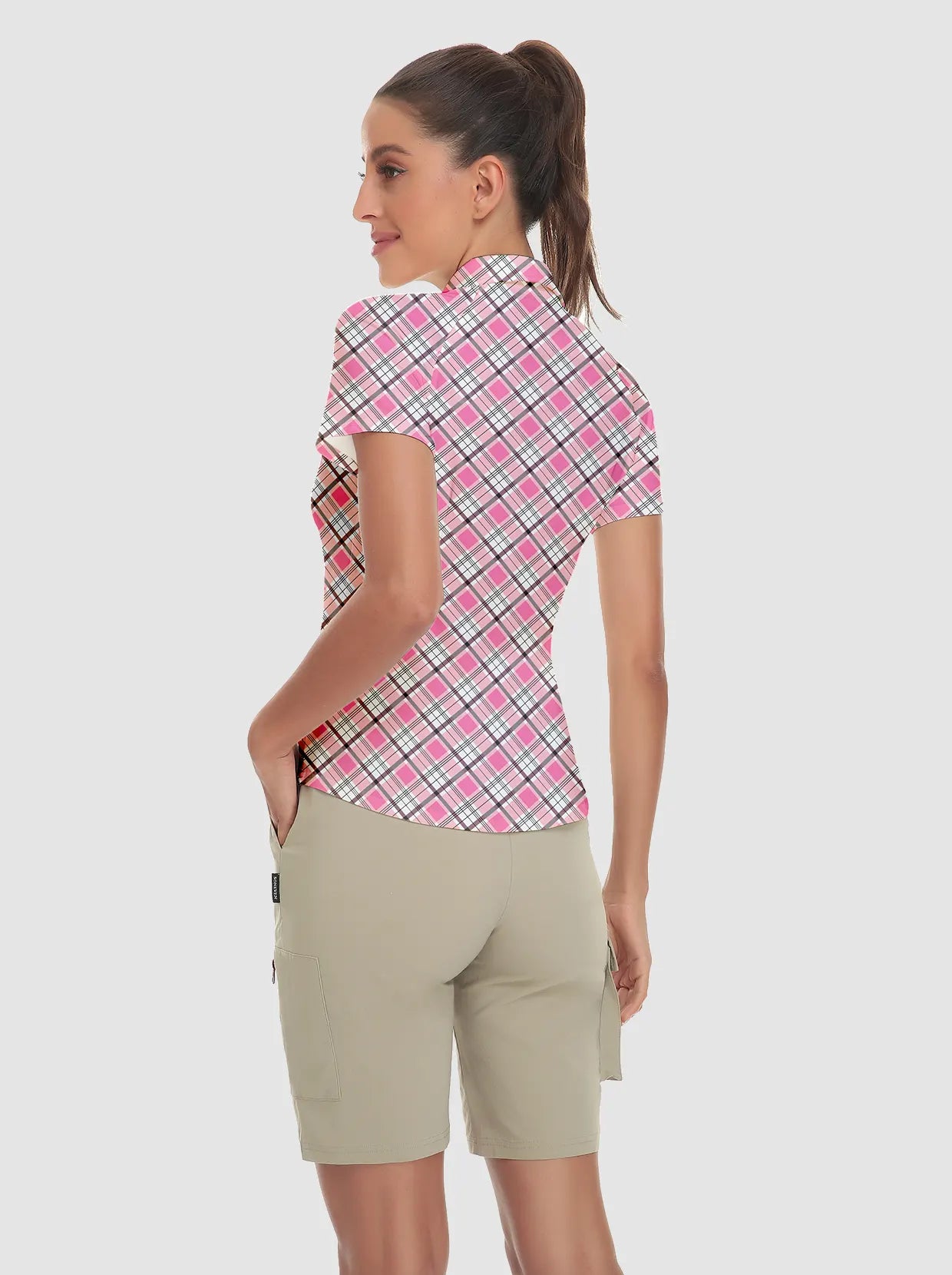 Pink Checkerboard Short-sleeve Golf Shirt for Women