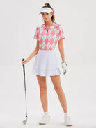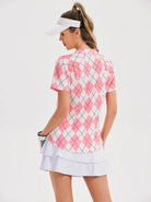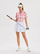 Pink and White Checkerboard Short-sleeve Golf Shirt for Women