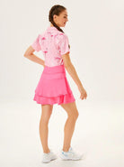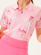 Stay cool and chic on the course with our pink flamingo short-sleeve golf polo. Crafted from light, breathable fabric, it wicks away moisture to keep you fresh during those sunny rounds. Its smooth feel and wrinkle-free design make it easy to look fabulous. Match it with your favorite golf bottoms for a fun, feminine touch to your game-day outfit.