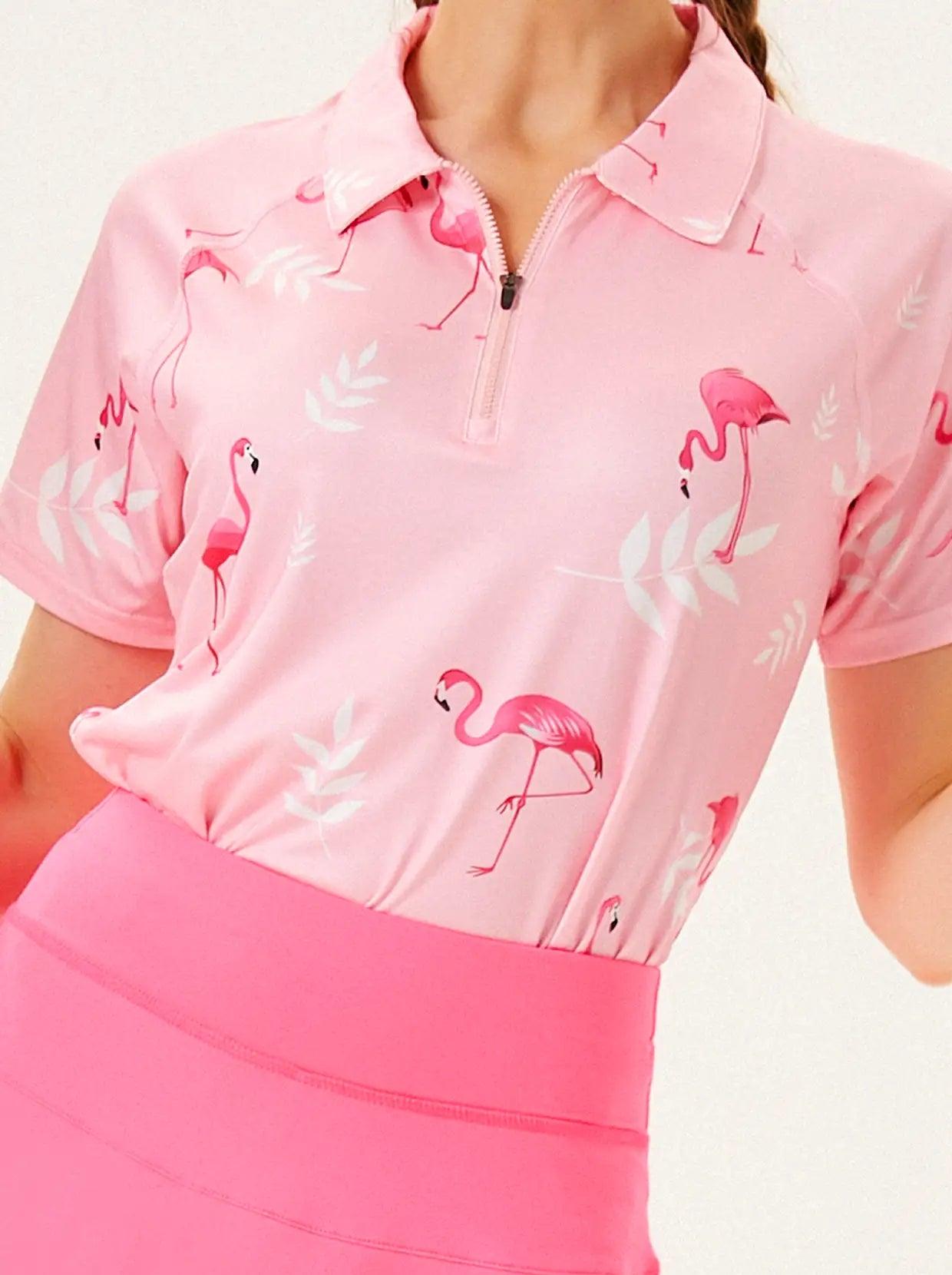 Pink Flamingo Short-sleeve Golf Polo for Ladies