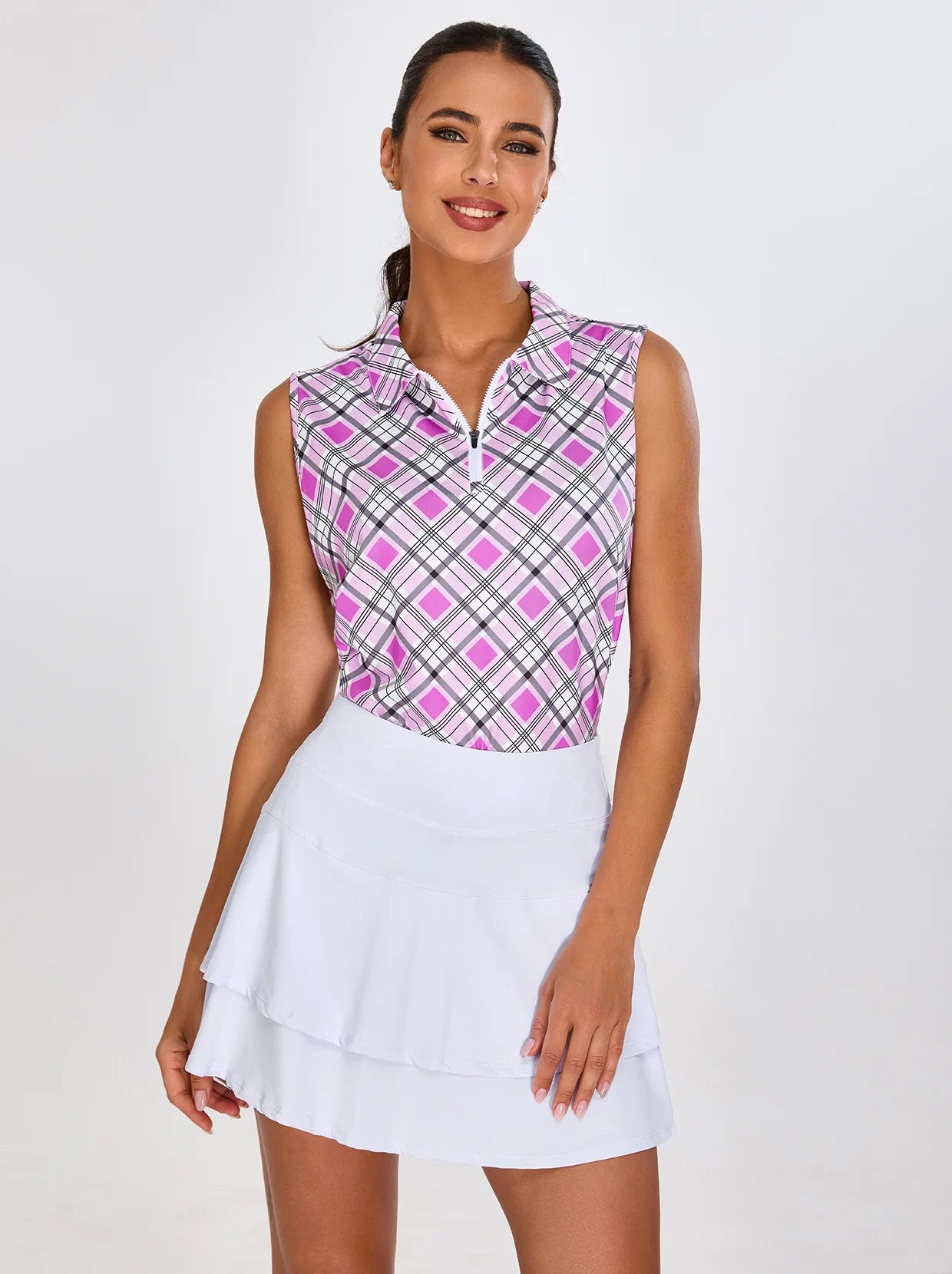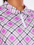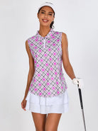 Soneven Ladies Golf Sleeveless Polo-Pink Checkerboard Athletic Polo Shirts Moisture Wicking Tennis Shirts Golf Shirts