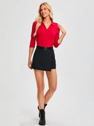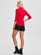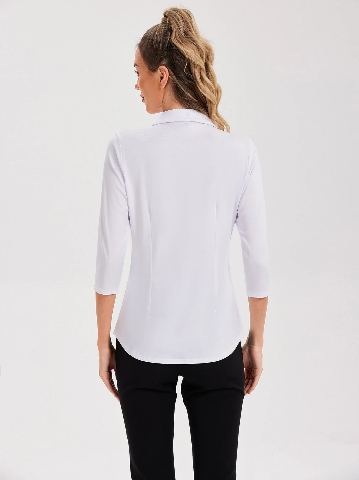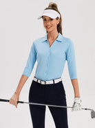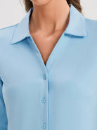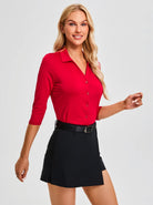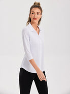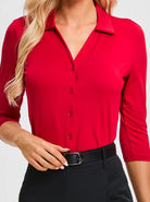 Solid Color V-neck Button-Down 3/4 Sleeve Shirt For Women