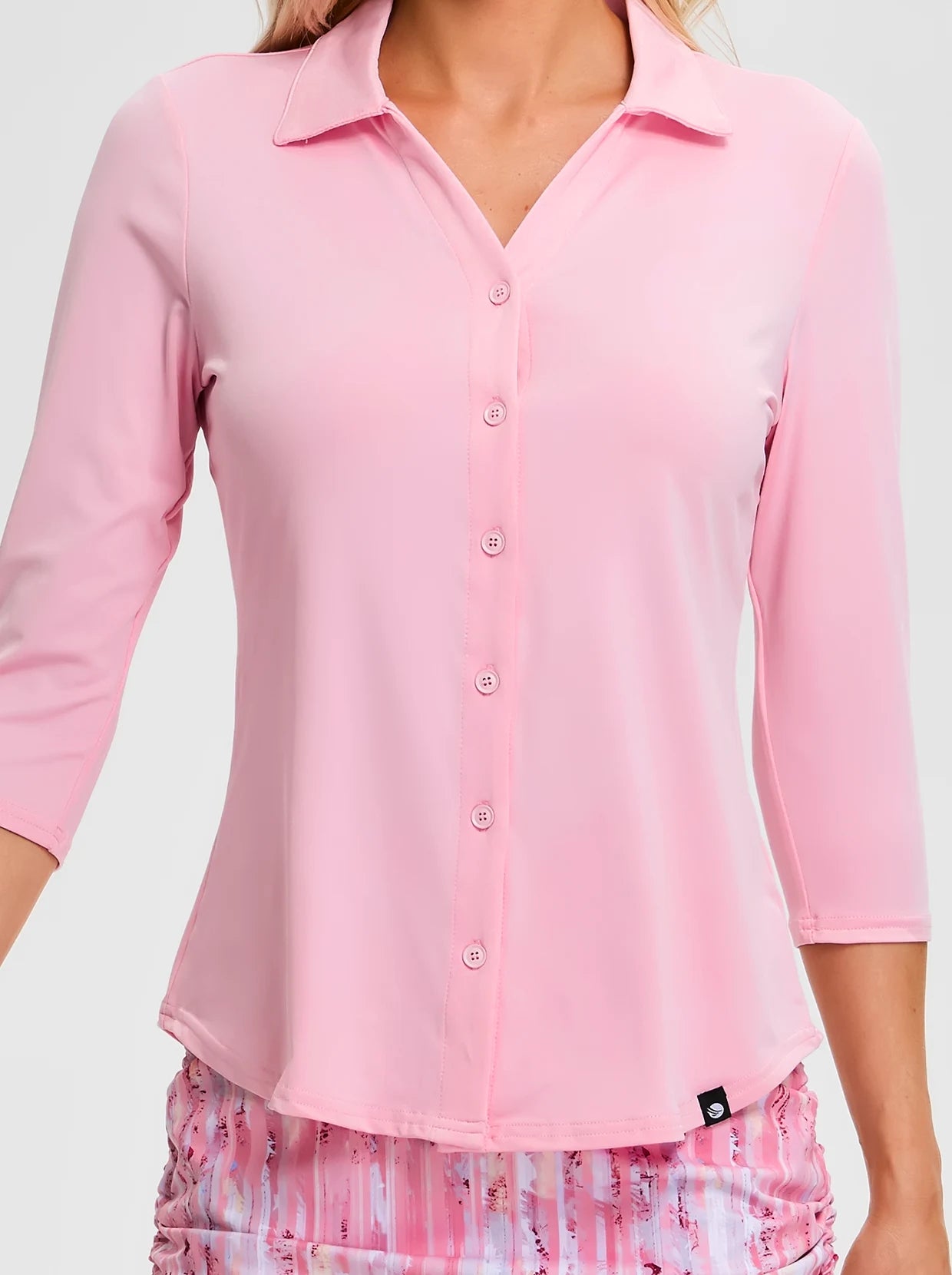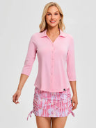 Play your best on the course with our Solid Pink V-Neck 3/4 Sleeve Shirt. The moisture-wicking fabric helps keep you cool and dry, while the soft fabric provides a comfortable fit, perfect for long days on the course. The classic V-neck and button-down design adds a touch of style. Perfect for casual wear and golf.