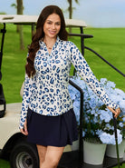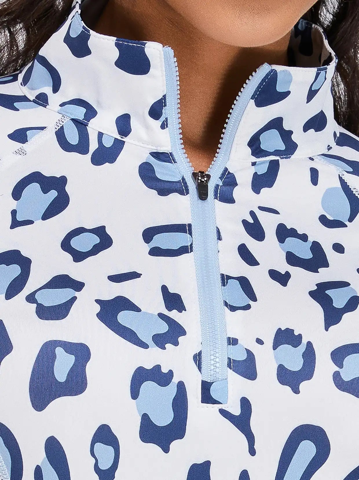 Blue Leopard Quarter-zip Long-sleeve Shirt with Pockets