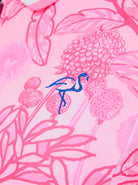- Pink Petal Prelude Pattern with Blue Embroidery Flamingo