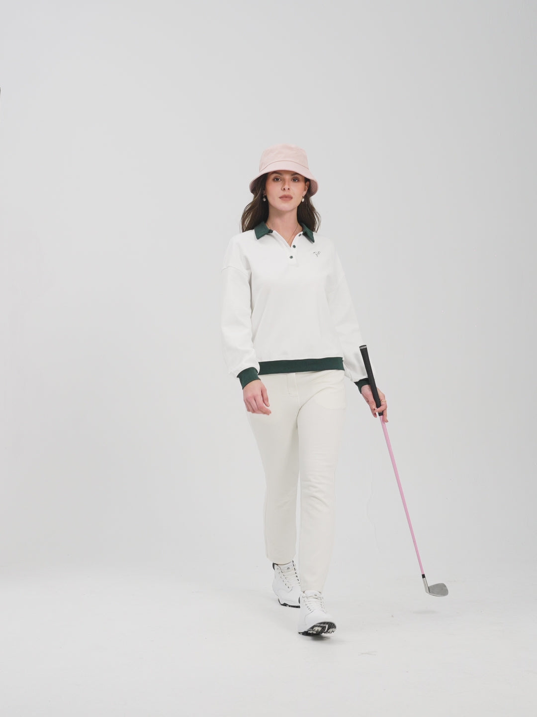White Soft Button-placket Golf Sweatshirt (SHIP IN 12 DAYS)