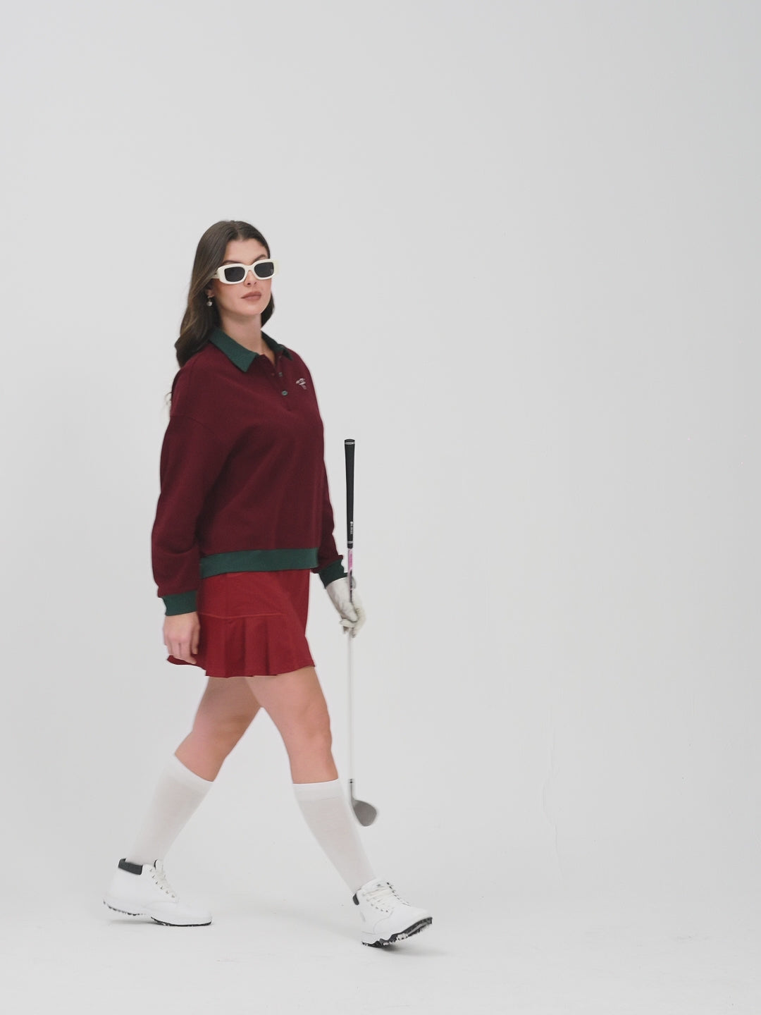 Cozy Red Button-placket Golf Sweatshirt (SHIP IN 12 DAYS)