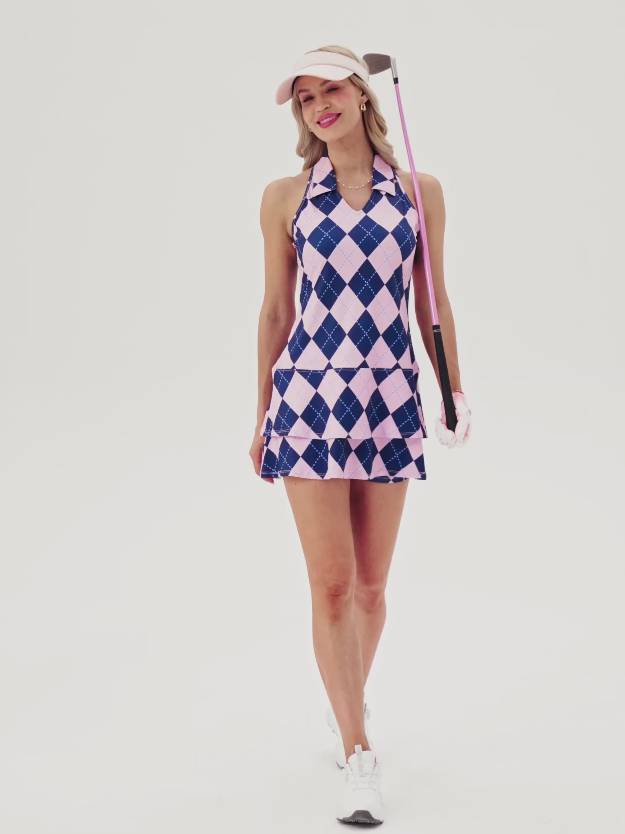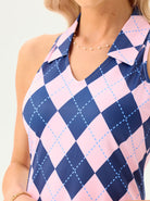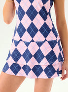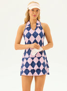 32" Pink and Blue Checkerboard Racerback Sleeveless Dress with Shorts