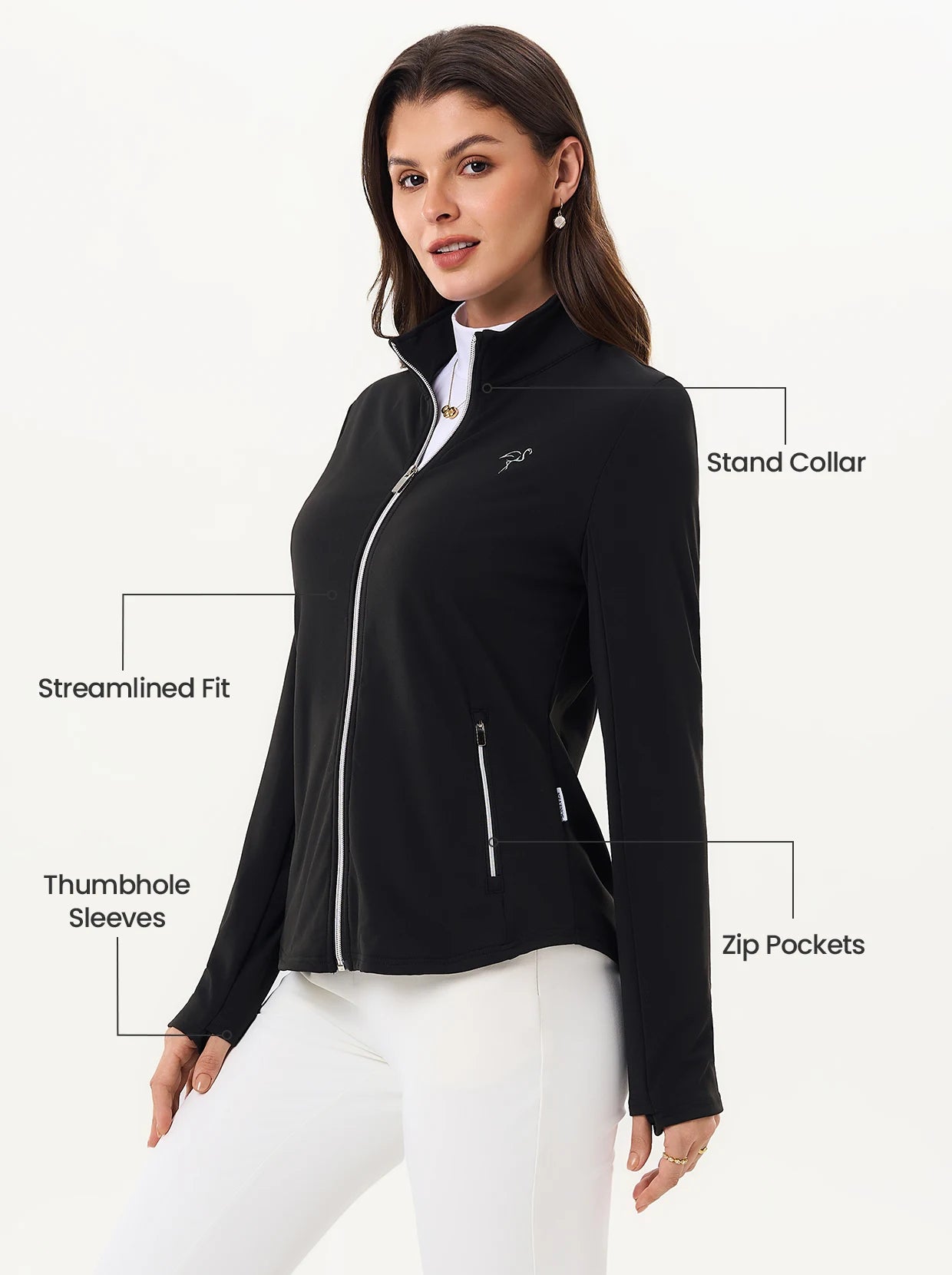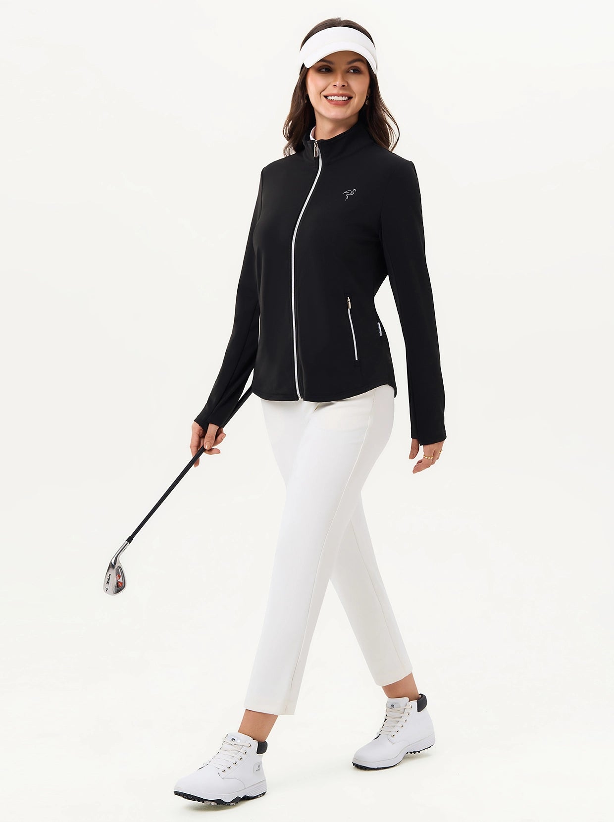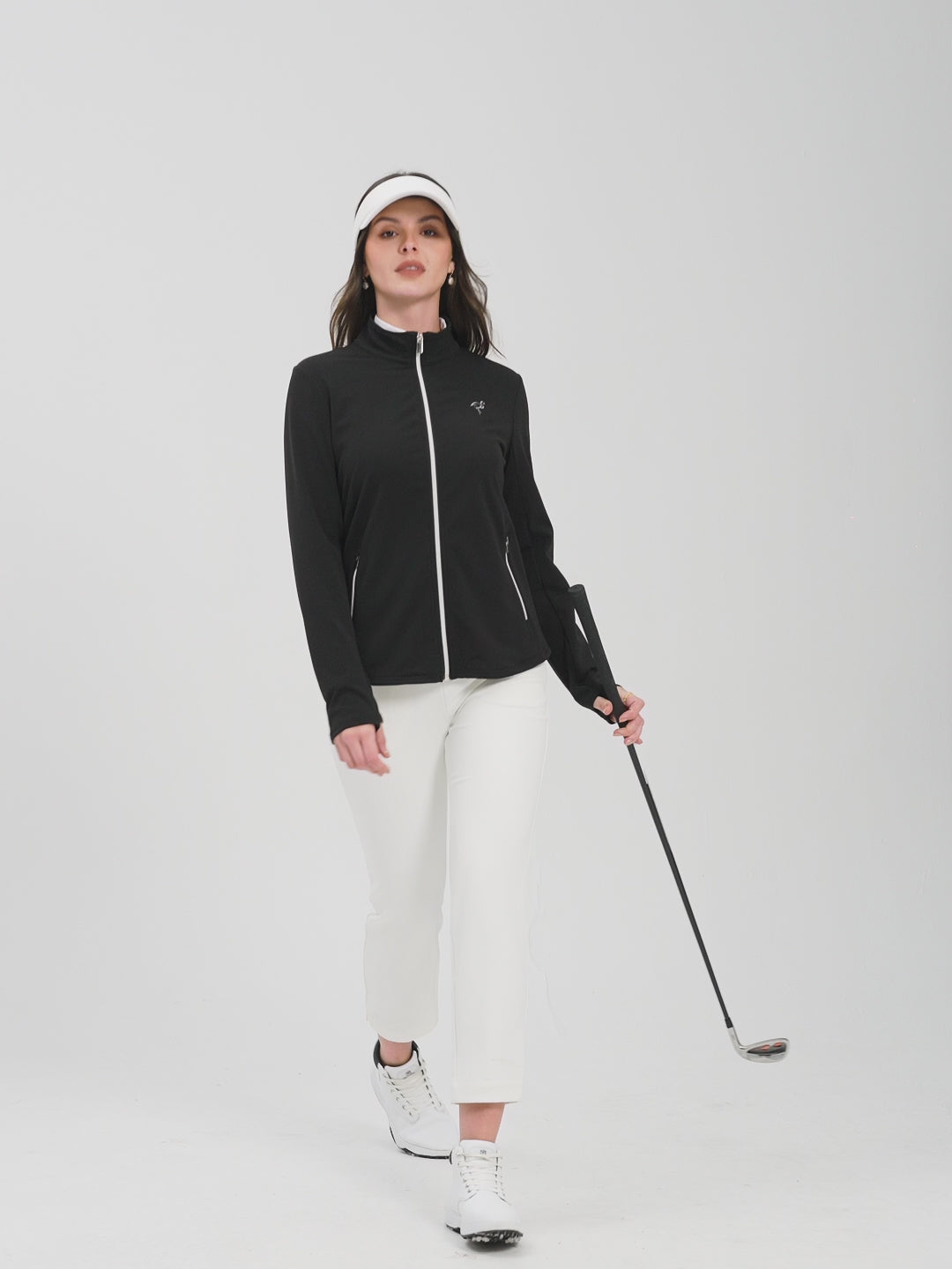 Basic Black Thermal Stand-collar Zipper Golf Jacket